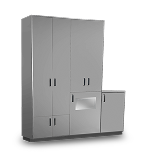 Стеллаж с открыт.полками Ш1000*Г250*В1900,ЛДСП Бетон Пайн Белый/Черный, с подсветкой на каждой полке