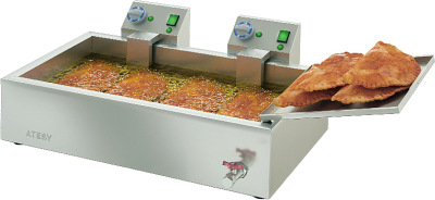 Фритюрница ATESY Чебуречница М используется на предприятиях общественного питания и торговли для приготовления чебуреков, пирожков и беляшей в разогретом масле (фритюре). Модель оснащена 2 терморегуляторами и 4 индикаторными лампами. Изделие полностью выполнено из пищевой нержавеющей стали. В комплект поставки входит кулинарный пинцет для переворачивания и выкладки чебуреков.