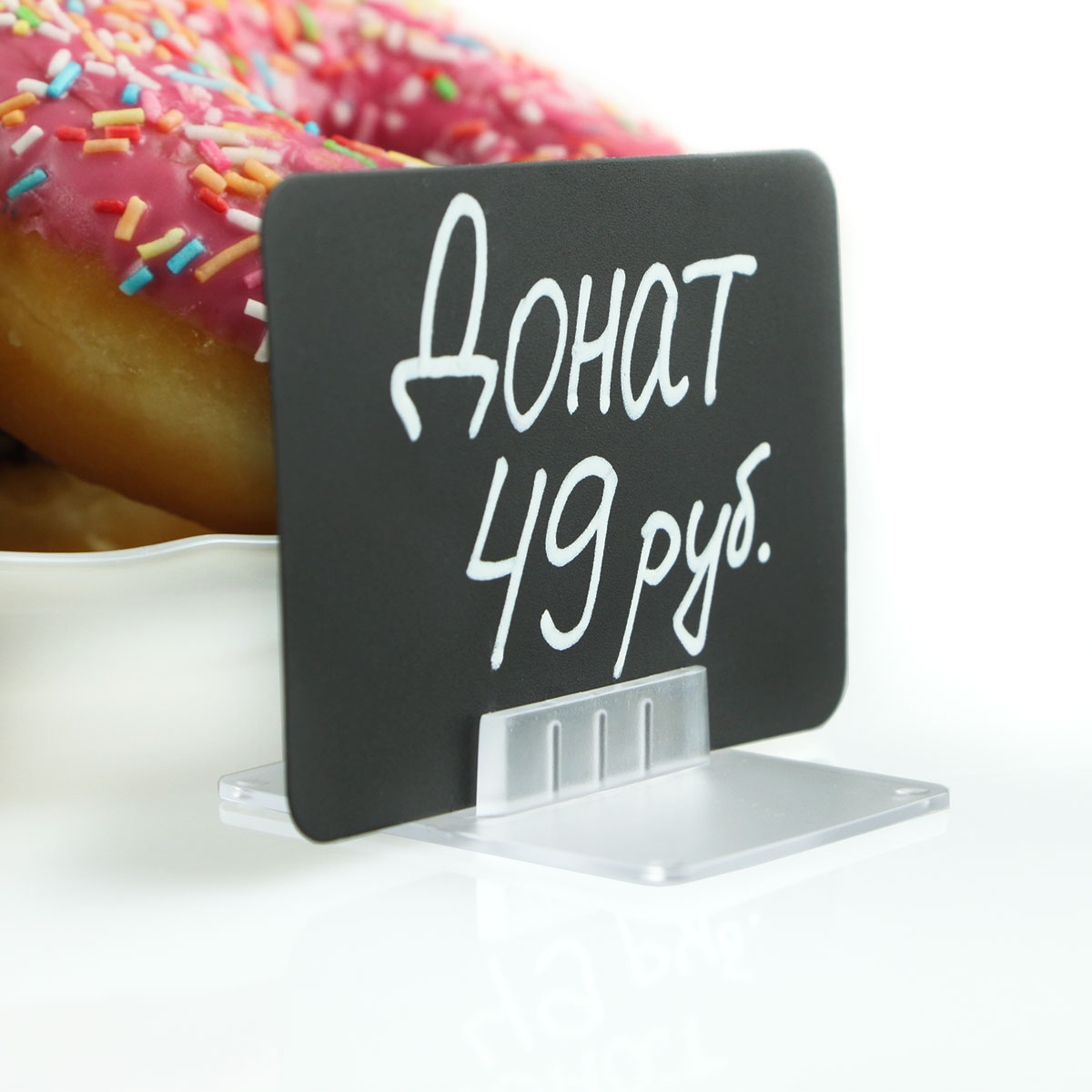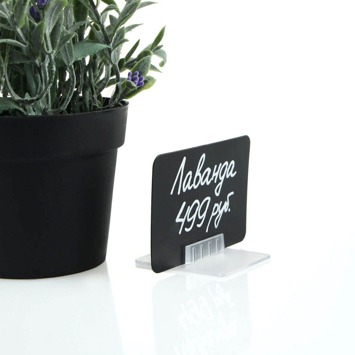 Держатель ценника с центральным расположением клипсы. Позволяет размещать вставки под углом 90° к поверхности размещения толщиной до 1,5 мм и размещать двухсторонние ценники.