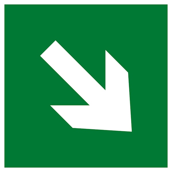 Знак Е 02-02 используется только вместе с другими эвакуационными знаками. Эвакуационный знак Направляющая стрелка под углом 45 градусов применяется в качестве пиктограммы для световых указателей выхода. Изготавливается на белой самоклеящейся пленке.
