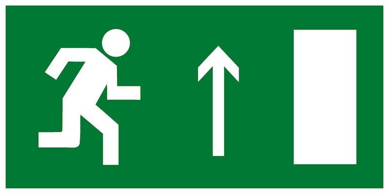 Эвакуационный знак Е11 используется в помещениях большой площади. Размещается над проходами, проемами не верхнем уровне или подвешивается к потолку. Изготавливается на белой самоклеящейся пленке.