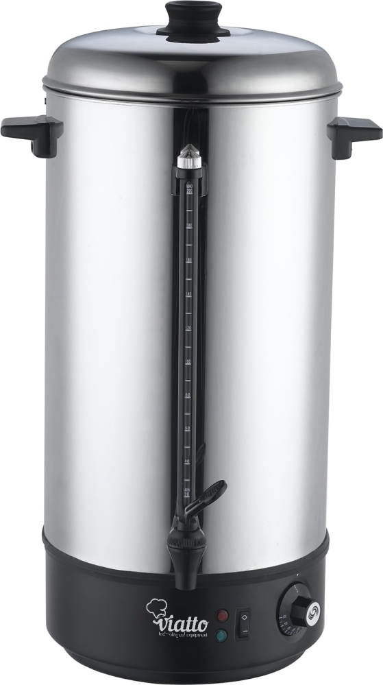 Наливной кипятильник VIATTO VA-WB20 предназначен для нагрева и кипячения воды, а также поддержания её в горячем состоянии. Оснащён терморегулятором, закрытым ТЭНом и одинарными стенками. Есть мерное стекло, позволяющее отслеживать уровень воды. Благодаря удобным ручкам оборудование можно легко переносить. Корпус изготовлен из нержавеющей стали и пластика.