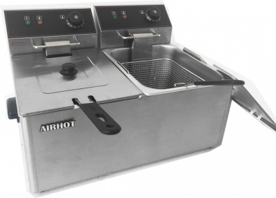 Фритюрница предназначена для приготовления различных продуктов в большом количестве масла на предприятиях общественного питания и торговли. Модель оснащена холодной зоной и 2 термостатами: рабочим и аварийным. Корпус и ванна выполнены из нержавеющей стали. В комплект поставки входят корзины с крышками.