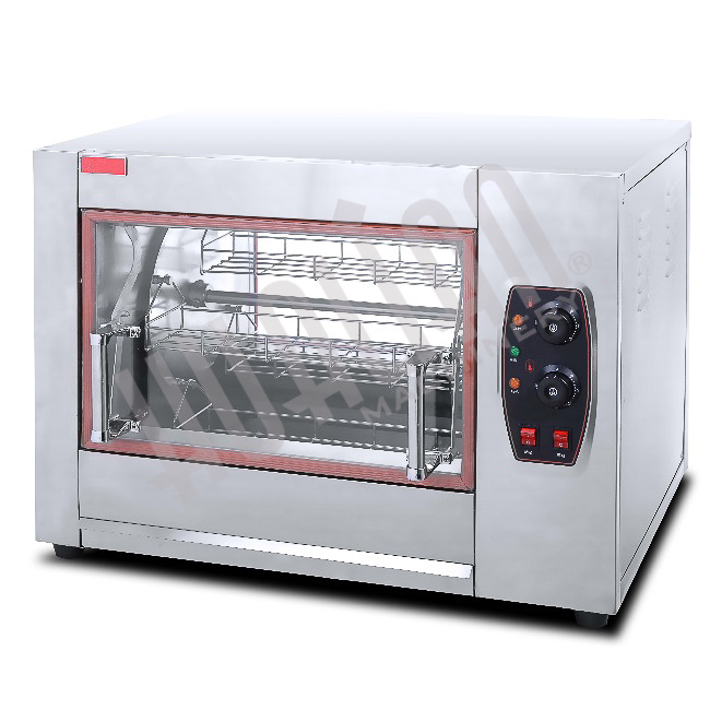 Прозрачные дверцы из жаропрочного стекла (может выдерживать температуру нагрева 300℃) позволяют наблюдать, как продукт в процессе обжарки покрывается аппетитной золотистой корочкой. А внутренняя подсветка сделает этот процесс еще более эффектным и привлекательным. Электрогриль обеспечивает быстрое и качественное приготовление как целых тушек цыплят и кур-гриль, так и куриных окорочков, грудок и других аналогичных продуктов. Еще одно преимущество представленного электрогриля – высокая мощность и эффективный нагрев, в результате чего на поверхности продукта быстро формируется корочка обжарки, а внутри мясо остается сочным и нежным. Другие достоинства модели: корпус из нержавеющей стали; удобно расположенная панель управления, при помощи которой можно установить режим приготовления; автоматическое поддержание заданной температуры с помощью встроенного термостата; простота эксплуатации и очистки, встроенный поднос гигиенично собирает стекающий жир; экономичное энергопотребление.