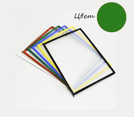 Карман для перекидной информационной системы изготовлен из цветного пластика с антибликовым протектором. Конструкция кармана выполнена таким образом, что позволяет с легкостью менять вложенную различную печатную продукцию при необходимости в любой момент. Карман имеет формат A4, что соответствует размерам 210 х 297 мм.
