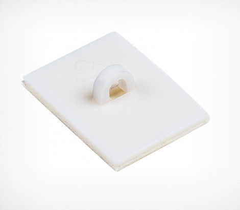 Размер крепления 27х37 мм. Максимальная нагрузка – 2 кг. Цвет белый. Крепится на различные гладкие поверхности при помощи двухстороннего скотча.