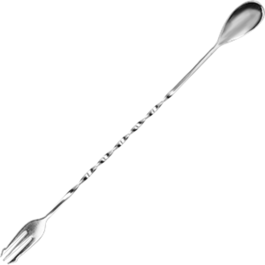 Особенности : Качественный металл, который не темнеет и не покрывается налетом. Не вступает в химическую реакцию с напитками и чистящими средствами. Универсальное изделие. Подходит для создания многослойных коктейлей. Позволяет аккуратно добавлять необходимые ингредиенты. В основной части поблескивает «ладошка» вместительностью 5 мл. С ее помощью можно добавлять небольшое количество ингредиента. Ручка имеет винтообразную форму. «Винт» поможет бармену создать шоу во время приготовления коктейля, аккуратно наливая сироп или ликер, который будет стекать по ручке. Вилка используется для украшения коктейлей.Такой ложкой можно без труда переместить, к примеру, вишенку, подцепив ее в банке и уложить в коктейльный стакан. С помощью этого же инструмента можно удалять косточки.