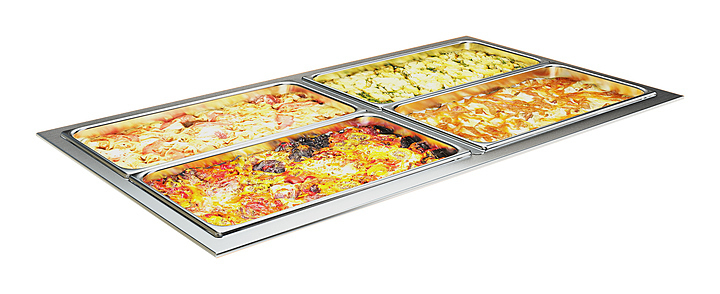 1355х590х225мм, Мармит вторых блюд водяной, дисковый ТЭН мощность 4кВт,регулятор температуры, ванна из нержавеющей стали марки AISI 304 толщиной 1мм, вместимость четыре GN1/1. Без полки. Без гастроемкостей, гастроемкости приобретаются отдельно. Поставляется в собранном виде. Скрытый монтаж. Без полки (полка поставляется отдельно при необходимости).