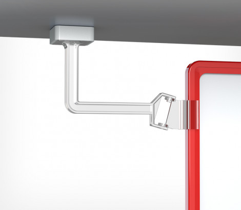 Маятниковый магнитный держатель оснащен функцией откидывания при задевании их покупателем. Магнитный держатель крепится к нижней поверхности полки.