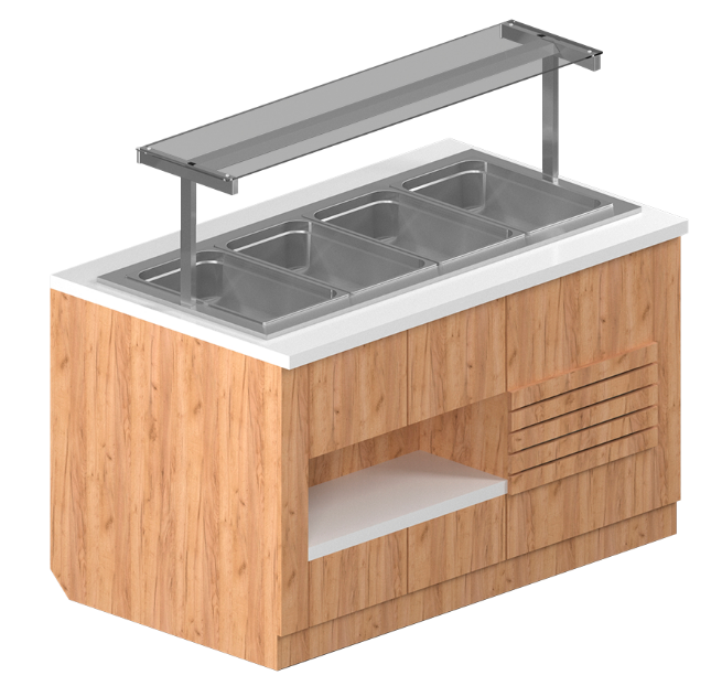 Мощность, кВт-2; Напряжение, В-220; Подсветка-есть; Рабочие температуры, °C 30...+85; Способ установки-пристенный; Частота тока, Гц-50; материал изготовления встроенной ванны-AISI 430; материал изготовления обшивки-ЛМДФ 16мм толщина в пленке ПВХ Сонома светлый ТЕ512 категория 3 (Изготовитель Фристайл); материал изготовления столешницы и внутренней полки-влагостойкая столешница 38мм; наличие гастроёмкостей и количество-GN1/1-3шт. Дополнительно оснащается надстройкой.Фото с надстройкой (в стоимость не включена).