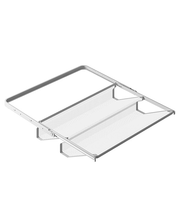 Выдвижная двухрядная мелкосетчатая обувница позволяет эффективно хранить до четырех либо шести пар обуви в зависимости от ширины. Производятся в двух вариантах на 438 и 595 мм.