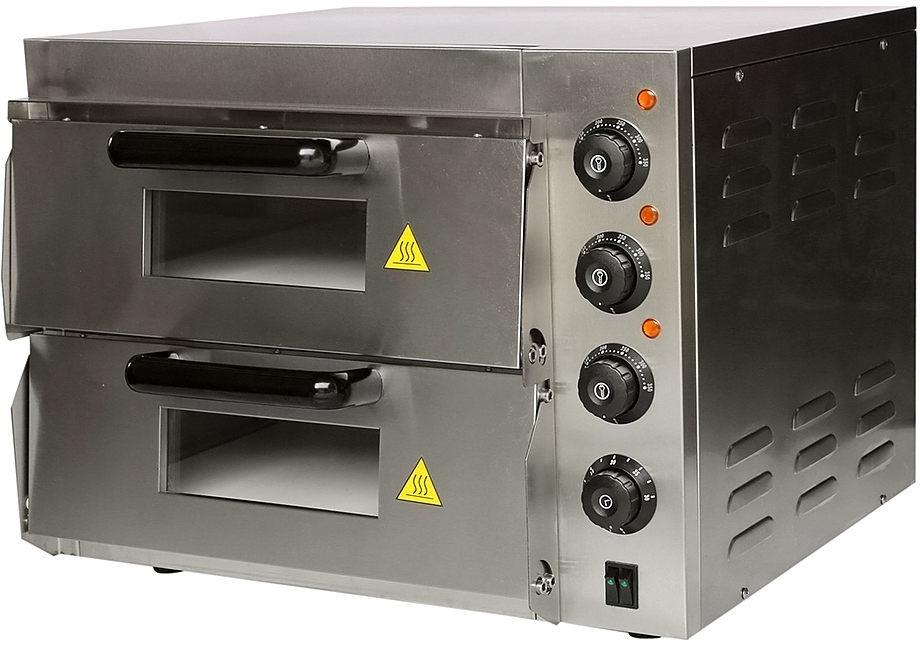 Печь для пиццы электрическая VIATTO EP-2T компактная и простая в управлении. Две камеры размером 400x400x200 мм имеют внутреннюю подсветку. Внутри каждой камеры — подовый камень 400х400 мм. Предусмотрена отдельная регулировка верхних и нижних ТЭНов. Дверца со смотровым стеклом. Корпус изготовлен из нержавеющей стали.