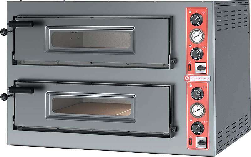 Печь для пиццы используется нана предприятиях пищевой промышленности, общественного питания и торговли для выпечки пиццы и хлебобулочных изделий, требующих высокой температуры приготовления. Модель оснащена электромеханической панелью управления. Передняя панель выполнена из нержавеющей стали, дно камеры - из огнеупорного камня толщиной 14 мм. Напряжение 380 В. Вместимость (пицц) 8 Количество камер (подов) 2 Количество пицц в одной камере 4 Внутренние размеры камеры 700x700x150 мм Диаметр пиццы 33 см Температурный режим 450 °С Мощность 11.2 кВт Ширина 990 мм Глубина 920 мм Высота 680 мм