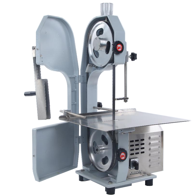 Ленточная пила резки мяса AIRHOT HSL-1650E подходит для мясных и рыбных магазинов, столовых и малых мясоперерабатывающих предприятий. Предназначена для резки свежего и замороженного мяса и птицы, в том числе с костями. Для обеспечения безопасности работы пила снабжена толкателем.