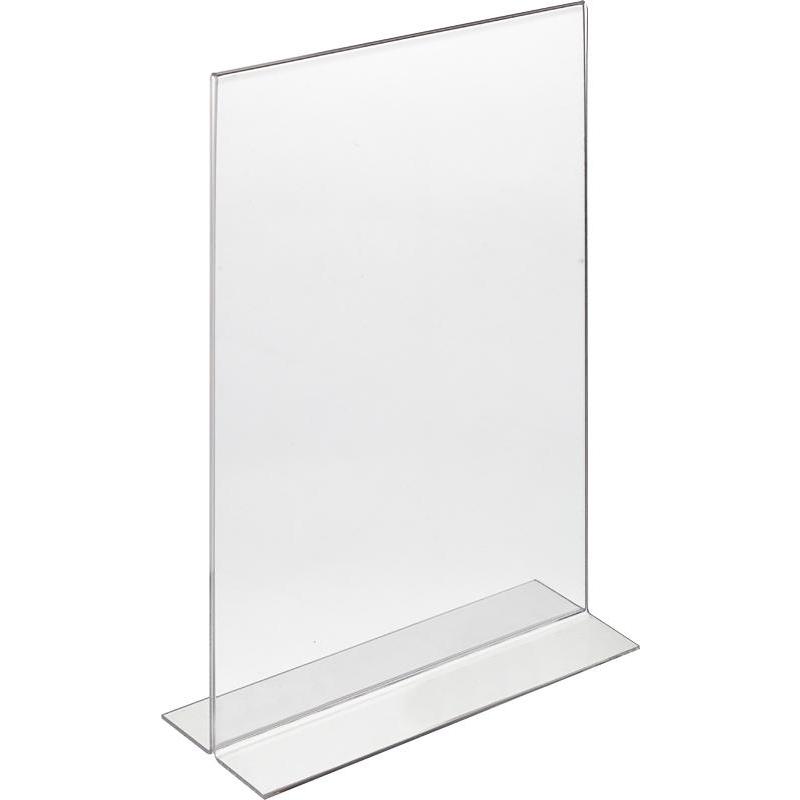Подставка двусторонняя (т-образное основание) широко используются в составе рекламных стоек в различных торговых точках. Изготовлена из прозрачного акрила высокого качества. Используется для оперативного размещения информации на стойках, столах и т.п., а также в качестве ценникодержателей к крупногабаритным товарам или меню-холдера.