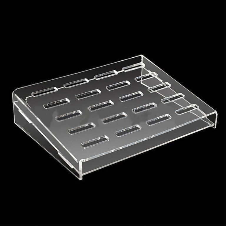 Вместимость данного держателя ювелирных украшений 15 колец. Подставка из акрила является нейтральным элементом торгового зала, поэтому подходят для ювелирных магазинов любой стилистики.