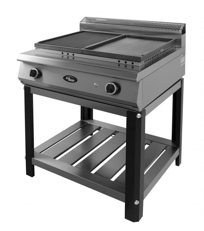Жарочная поверхность Grill Master Ф2ЖТЛПЖЭ предназначена для приготовления мяса, рыбы, овощей и других продуктов методом жарки на предприятиях общественного питания и торговли. Модель оснащена полностью разборным стендом и нейтральной полкой. Корпус выполнен из нержавеющей стали.