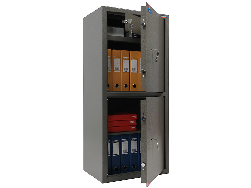 толщина лицевой панели - 5 мм толщина боковых стенок - 3 мм защита замка от высверливания комплектуются ключевым замком KABA MAUER предусмотрена возможность анкерного крепления к полу и стене (анкерный болт в комплекте)