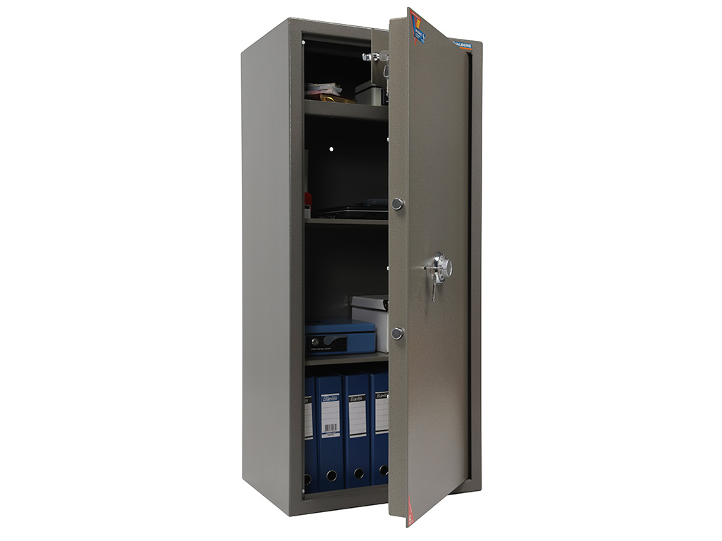 толщина лицевой панели - 5 мм толщина боковых стенок - 3 мм защита замка от высверливания комплектуются ключевым замком KABA MAUER + кодовый механический замок (без смены кода) предусмотрена возможность анкерного крепления к полу (анкерный болт в комплекте)