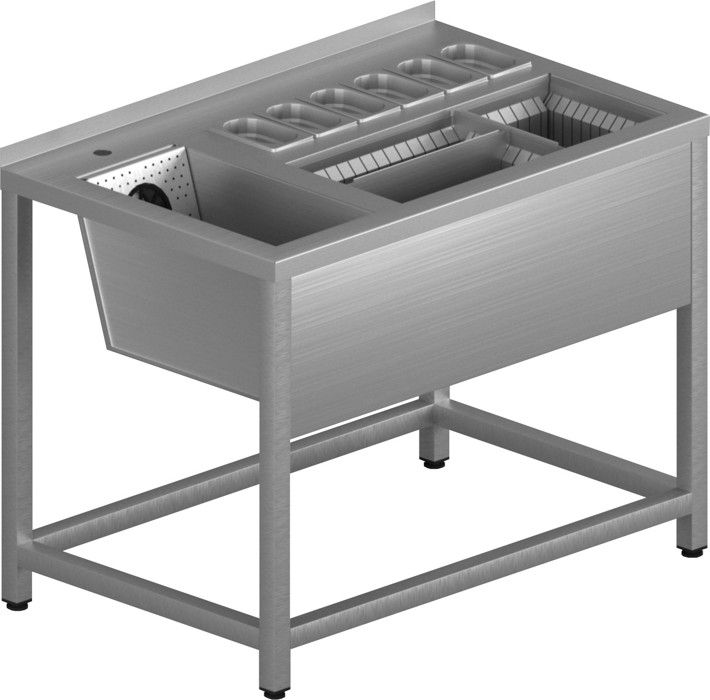 Конструкция сварная нерж AISI 430. В комплекте: Гастроемкость нерж 1/9- 65 (176x108) 0,6л Luxhstahl (Китай)-6шт, Омыватель для стаканов (Материалы)-1шт