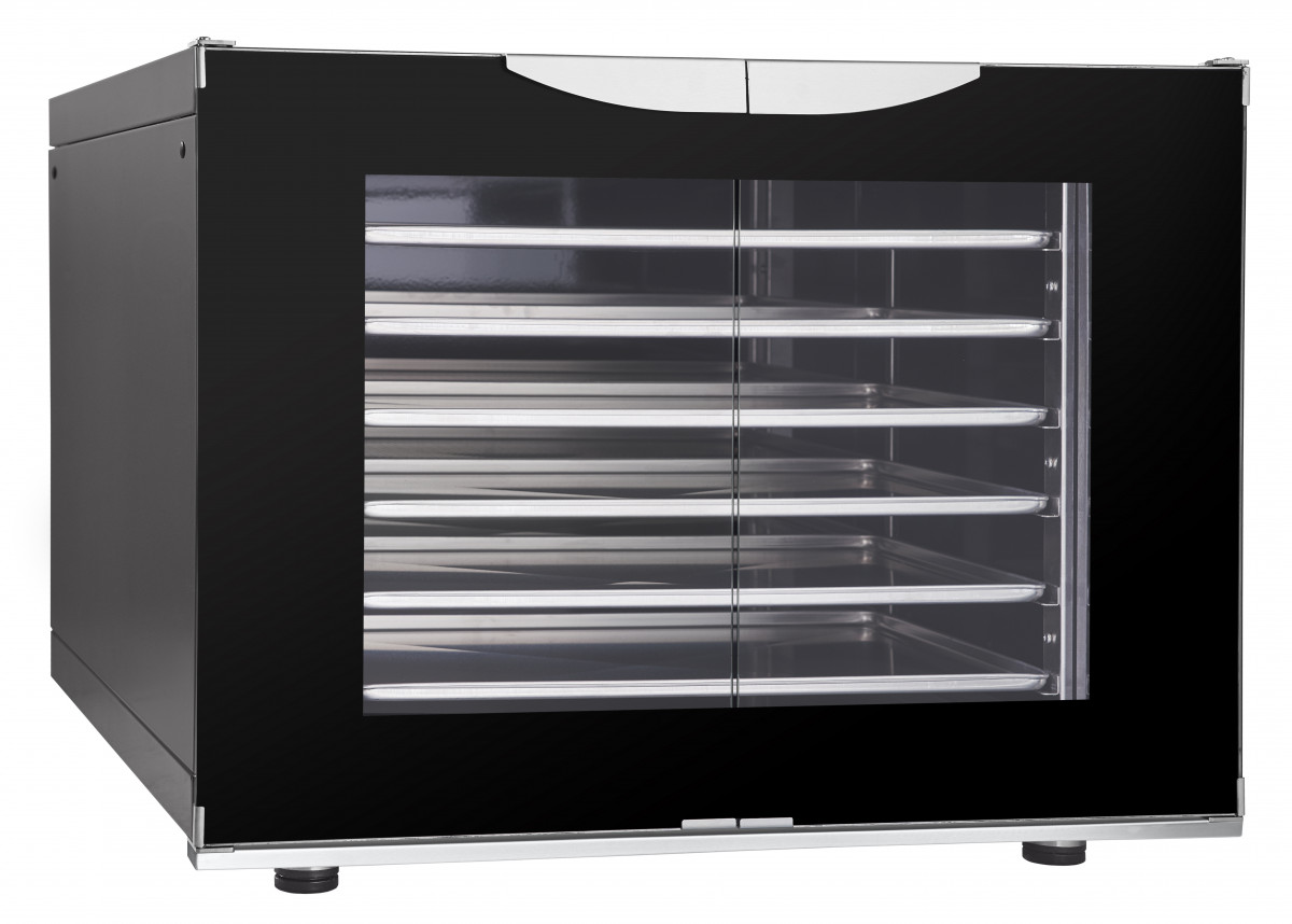 Основной режим работы - расстойка при температуре 45 °С. Лоток для сбора конденсата. Корпус и внутренняя поверхность рабочей камеры выполнены из черного металла, покрытого высококачественной эмалью. Регулируемые по высоте ножки