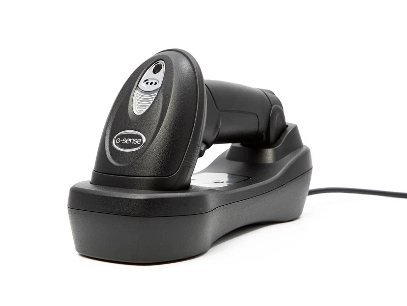Имеет зарядно-коммуникационный кредл, в котором сканер сидит очень плотно и не "болтается". Кредл можно повесить на стену, для экономии места на рабочем столе.