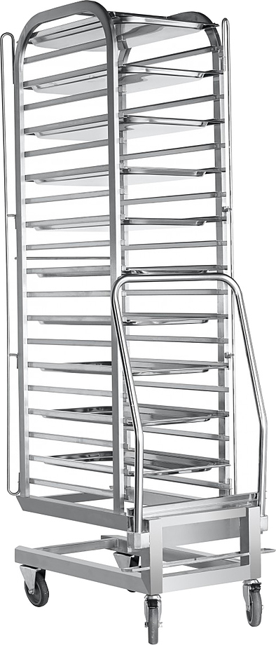 Тележка передвижная ТП-20-1/1 является вспомогательным оборудованием, вмещает 20 гастроемкостей, размером GN 1/1, и используется для их транспортировки и установки в 20-ти уровневом пароконвектомате ПКА-20-1/1 ПП..