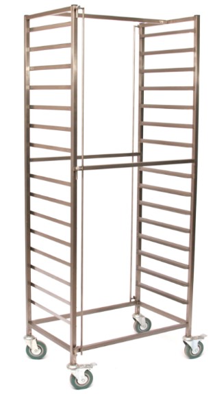 Тележка-шпилька для противней. Конструкция сварная. Имеет 15 уровней. Выполнена из нержавеющей стали AISI 304. Каркас - труба 20х20 AISI 304