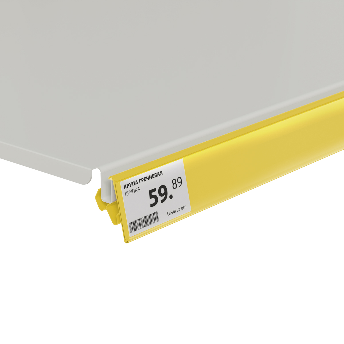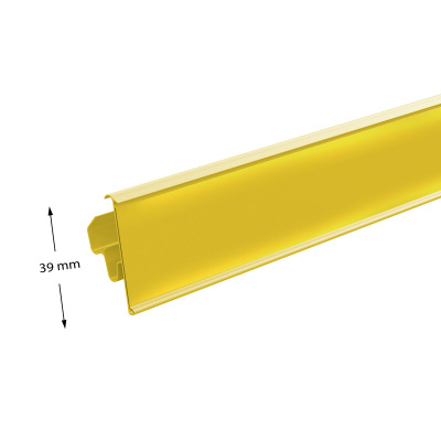 Фиксируется на стеллажах TEGOMETALL, MAGO, LINDE, РУСЬ и подобных. Возможна установка двух положений наклона ценника к торцу полки. Высота - 39, 60 мм