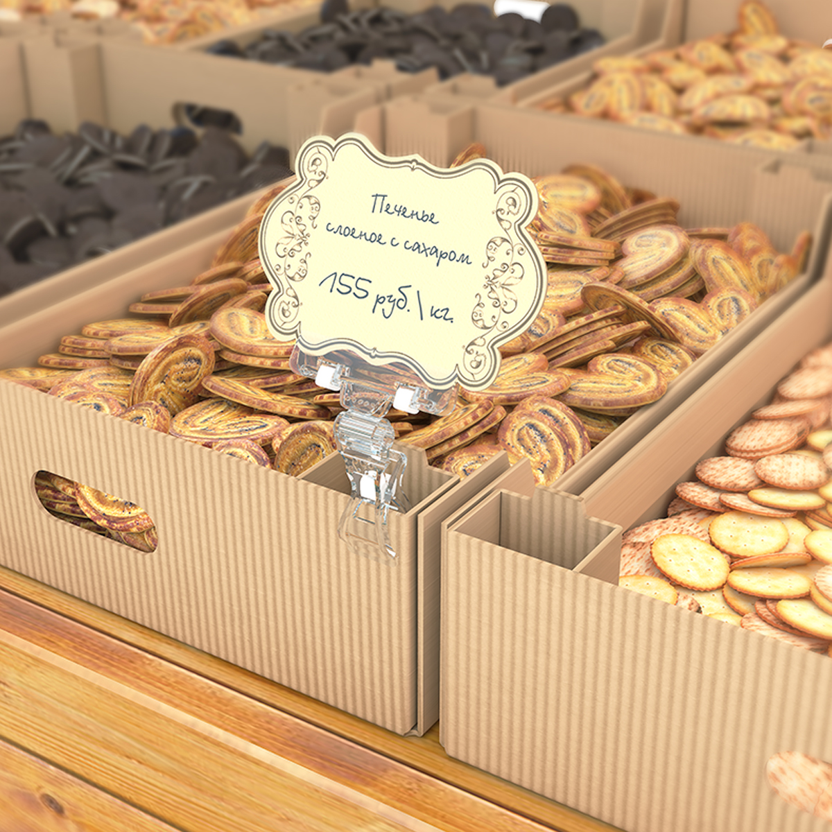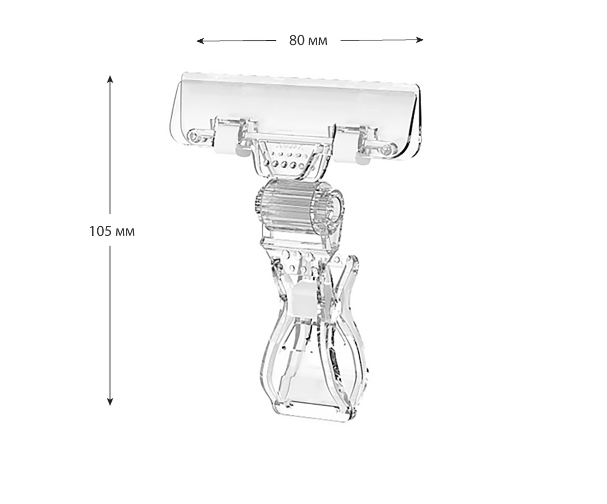 Позволяет фиксировать ценники/информационные объявления на товаре, краю корзин, трубчатом торговом оборудовании (максимального диаметра 25 мм).