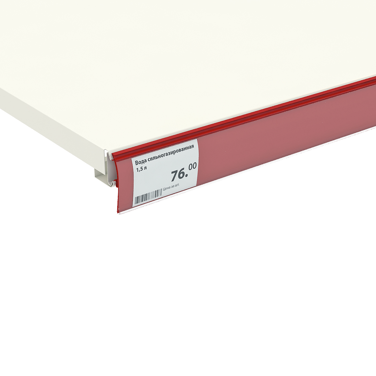 Большинство торговых стеллажей имеют специальный профильный край, который позволяет крепить (стеллажные) полочные ценникодержатели без скотча, а лишь защелкивая их на краю полки. Таким и является ценникодержатель HSAC 39. Цветная основа позволит подчеркнуть индивидуальность вашей торговой точки, а прозрачный верх позволит закрепить и защитить от влаги и повреждений непосредственно сам ценник, который будет установлен в ценникодержатель. Габаритные размеры: высота – 39 мм, длина – 1318 мм.