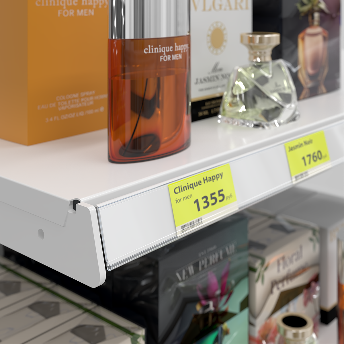 Изготовлен ценникодержатель из цветного и прозрачного ПВХ. Цветная основа позволит подчеркнуть индивидуальность вашей торговой точки, а прозрачный верх позволит закрепить и защитить от влаги и повреждений непосредственно сам ценник, который будет установлен в ценникодержатель. Габаритные размеры: высота – 30 мм, длина – 1000 мм.