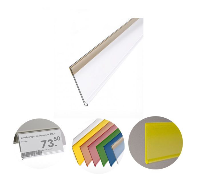 Изготовлен ценникодержатель из цветного и прозрачного ПВХ. Цветная основа позволит подчеркнуть индивидуальность вашей торговой точки, а прозрачный верх позволит закрепить и защитить от влаги и повреждений непосредственно сам ценник, который будет установлен в ценникодержатель. Габаритные размеры: высота – 39 мм, длина – 1250 мм.