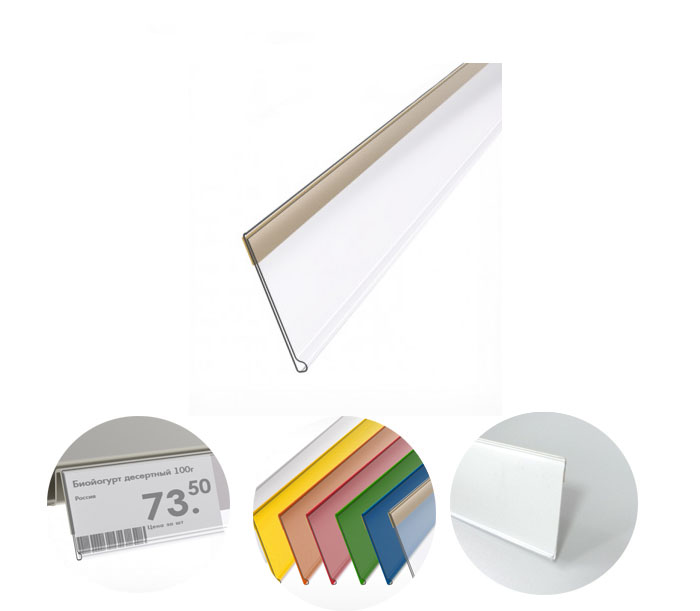 Изготовлен ценникодержатель из цветного и прозрачного ПВХ. Цветная основа позволит подчеркнуть индивидуальность вашей торговой точки, а прозрачный верх позволит закрепить и защитить от влаги и повреждений непосредственно сам ценник, который будет установлен в ценникодержатель. Габаритные размеры: высота – 60 мм, длина – 1250 мм.