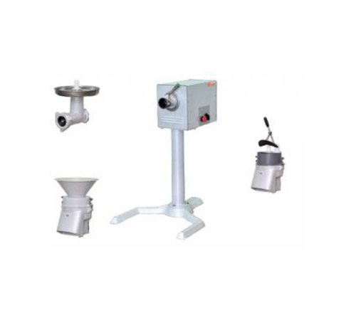 Приводной механизм оснащен двухскоростным электродвигателем. Машина упаковывается в деревянный ящик. Состоит из: •Приводной механизм (ПМ)* •Мясорубка (ММ) •Механизм овощерезательно-протирочный (МО) •Подставка П-01**