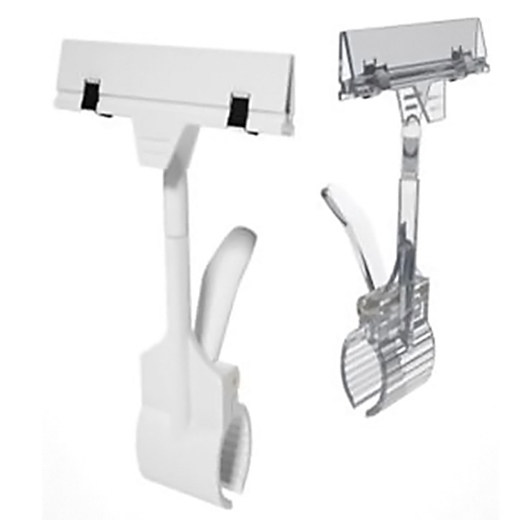 Крепится на торец полки, корзину толщиной до 35 мм (Ø трубы - 39 мм). Толщина ценника или таблички - до 6 мм. Ширина держателя ценника - 108 мм