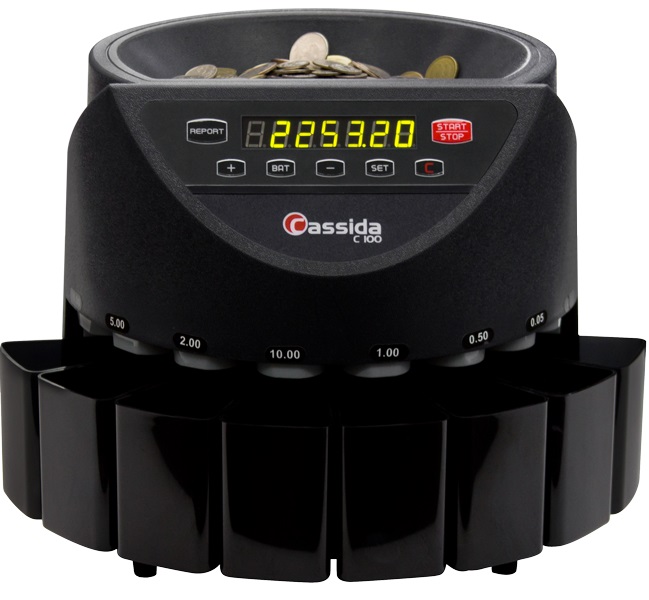 Функциональные характеристики: Пересчет и сортировка российских монет достоинством 1 коп., 5 коп., 10 коп., 50 коп., 1 руб., 2 руб., 5 руб., 10 руб. Функция суммирования пересчитываемых монет по количеству и номиналу Функция фасовки с отсчетом заданного числа монет по каждому номиналу Автоматическая остановка при заполнении приемного бункера или по достижению установленного значения фасовки Светодиодный дисплей с зеленым свечением, отображающий процесс и результаты пересчета Отбраковочный бункер для нетипичных и юбилейных монет, обнаруженных в процессе пересчета Звуковая и кодовая индикации при возникновении ошибок в работе аппарата