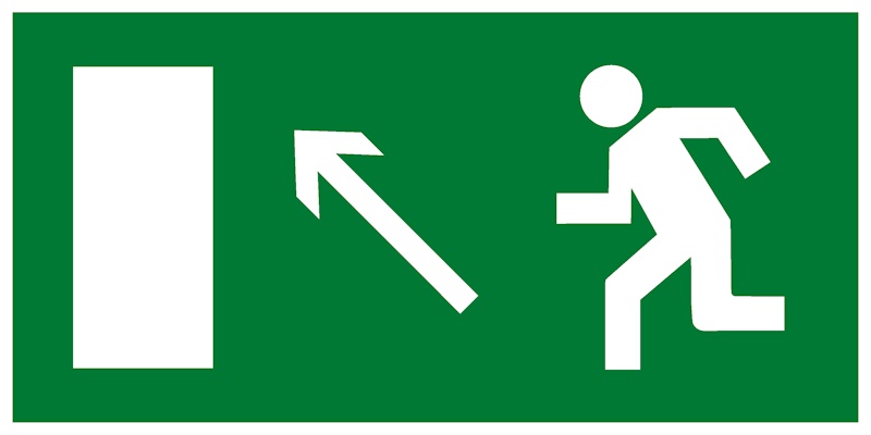 Эвакуационный знак Е06 предназначен для указания направления движения к эвакуационному выходу – налево вверх. Устанавливается на путях эвакуации. Изготавливается на белой самоклеящейся пленке.