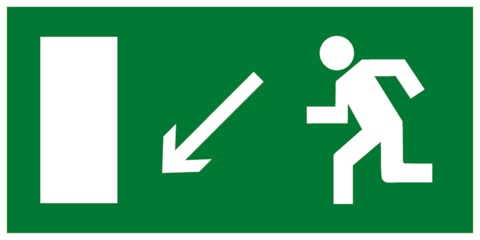 Эвакуационный знак Е08 предназначен для указания направления движения к эвакуационному выходу – налево вниз. Устанавливается на путях эвакуации. Изготавливается на белой самоклеящейся пленке.