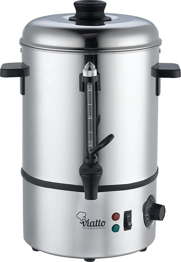 Наливной кипятильник VIATTO VA-WB08SS предназначен для нагрева и кипячения воды, а также поддержания её в горячем состоянии. Оснащён терморегулятором, закрытым ТЭНом и одинарными стенками. Есть мерное стекло, позволяющее отслеживать уровень воды. Благодаря удобным ручкам оборудование можно легко переносить. Корпус изготовлен из нержавеющей стали.