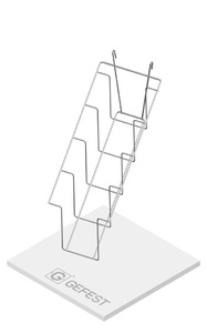Полка легко крепится к сеткам, сетчатым модулям, стендам и стойкам с помощью специальных крючков.