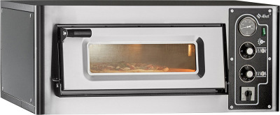 Печь электрическая для пиццы имеет раздельную регулировку мощности верхних и нижних ТЭНов. Рабочий диапазон температуры духовки 20-450 С. Установленный аварийный термовыключатель предохраняет шкаф от перегрева свыше 500 С. Облицовка выполнена из крашеного металла, дверка и рамка камеры из эмалированного, а жарочный шкаф из оцинкованного листа толщиной 1,5 мм, что полностью соответствует общепринятым стандартам. Для того, чтобы процесс выпечки был максимально комфортен и нагляден, в рабочей камере есть внутренняя подсветка, а дверка укомплектована жаропрочным смотровым окном. Конструкция печи позволяет установку в несколько ярусов, что позволяет увеличить производительность, при этом экономя рабочее пространство кухни. Также печь может быть установлена на подставку ПП-2.