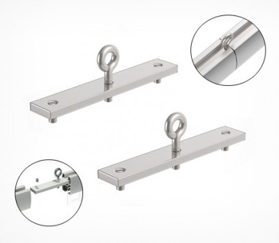 Соединитель UNI-JOIN фиксируется в профиле поворотом винта-петли, а также двумя потайными винтами. Такое крепления позволяет объединять 2 профиля UNITRACK в более длинную конструкцию. Петля-соединитель UNI-JOIN также может использоваться как усиленная подвесная петля при общем весе профиля с подвешенными рамками или плакатом более 10 кг.
