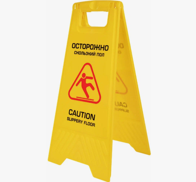 Предназначен для привлечения внимания и предупреждения людей,необходима, чтобы предотвратить травмирование посетителей и персонала из-за скользкого пола . Легко складывается и раскладывается.
