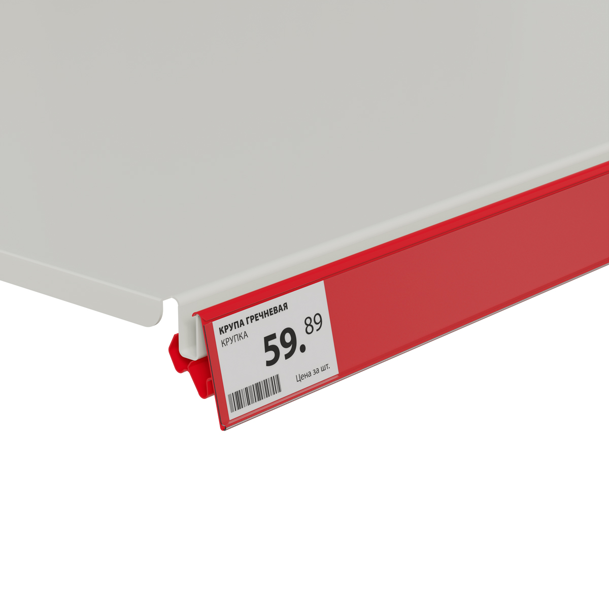 Фиксируется на стеллажах TEGOMETALL, MAGO, LINDE, РУСЬ и подобных. Возможна установка двух положений наклона ценника к торцу полки. Высота - 39, 60 мм