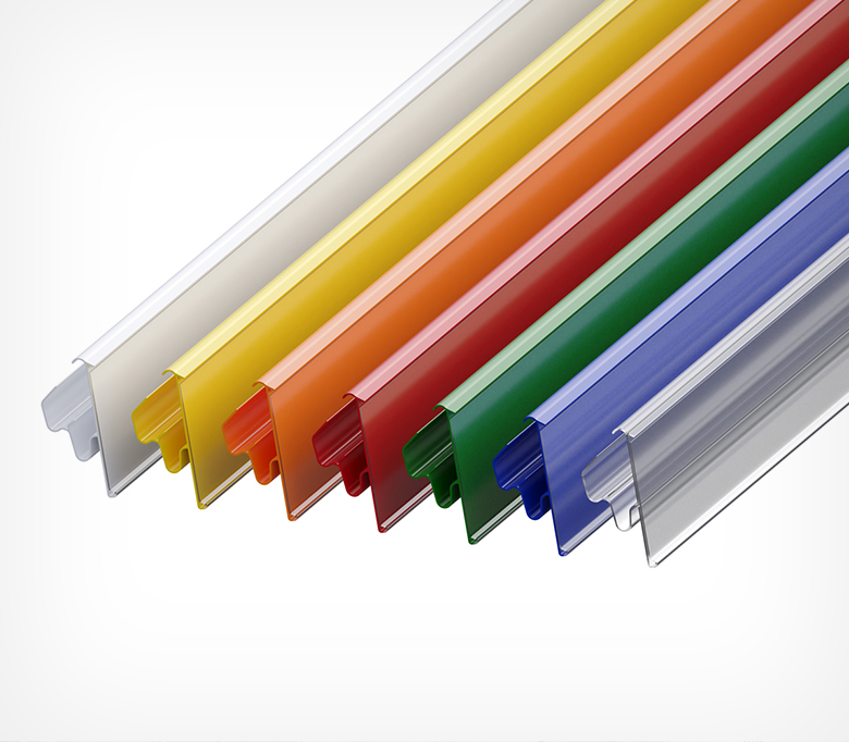 Фиксируется на стеллажах TEGOMETALL, MAGO, LINDE, РУСЬ и подобных. Возможна установка двух положений наклона ценника к торцу полки. Высота - 39, 60 мм