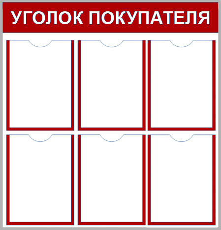 Выполнен из ПВХ высокого качества, кармашки изготовлены из прозрачного пластика толщиной 3 мм. Позволяет удобно и наглядно разместить информацию для покупателя, а также обеспечить сохранность бумажного носителя, установленного внутрь за счет своей удобной формы. Благодаря своей легкости возможно закрепить стенд на стене при помощи двухстороннего скотча.