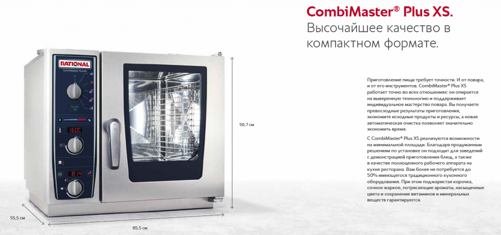 Ландсберг-на-Лехе, 15.05.2017 г. – CombiMaster Plus теперь доступен и в компактном формате. Новый аппарат серии CombiMaster Plus, занимающий всего 0,2 м3, может быть установлен на любой, даже самой маленькой профессиональной кухне, и отличается простым обслуживанием. RATIONAL продолжает оправдывать репутацию инноватора — автоматическая мойка облегчает работу тем клиентам, кто выбирает CombiMaster® Plus!